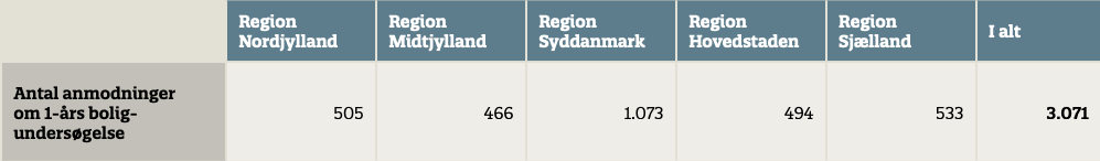 Tabel 10. Antal anmodninger om boligundersøgelse