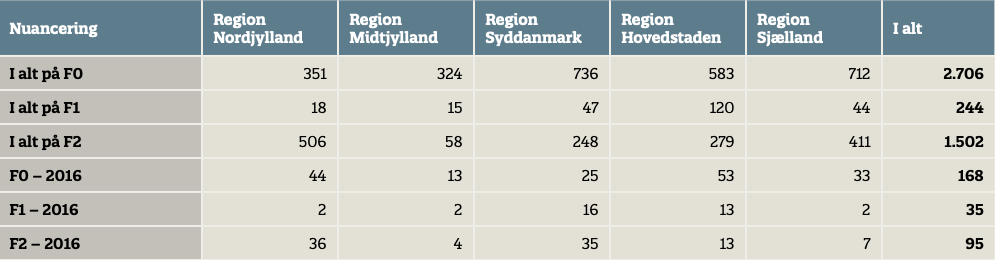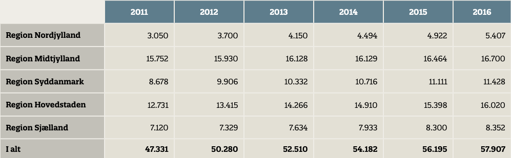 Antallet er opgjort som antal aktive sager i 2016, det vil sige nye sager, der er startet i 2016, videreførte sager fra tidligere år og sager, der er afsluttet i 2016.