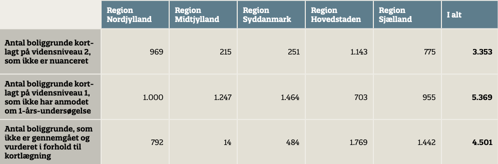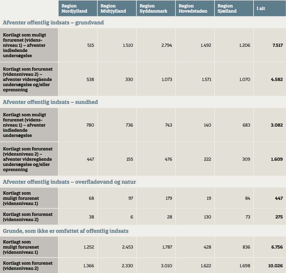 Tabel 8. Status over kortlagte grunde, der afventer offentlig indsats og kortlagte grunde, der ikke er omfattet af offentlig indsats