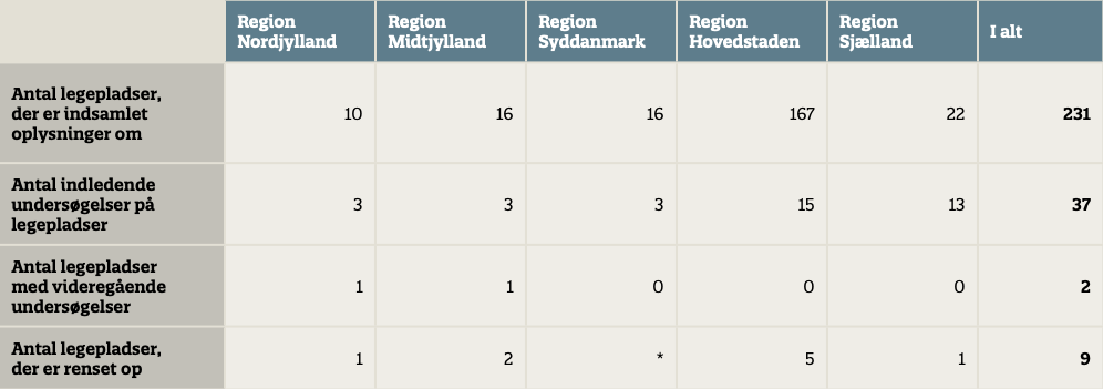 Tabel 13. Indsatsen på offentlige legepladser