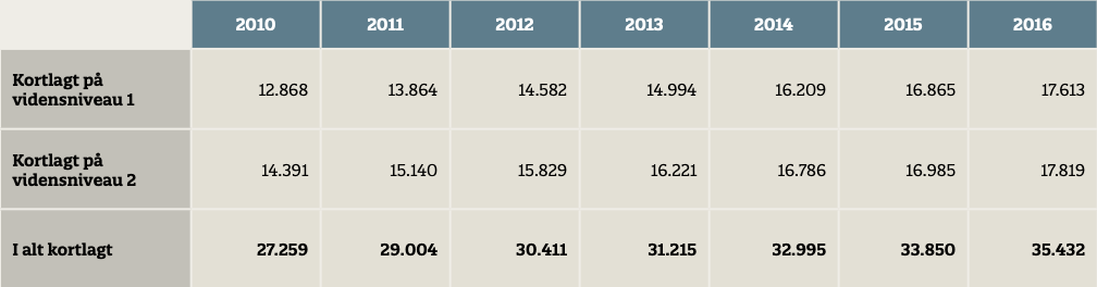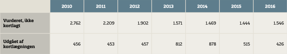 Tabel 2. Udviklingen i antallet af kortlagte grunde i perioden 2010-2016