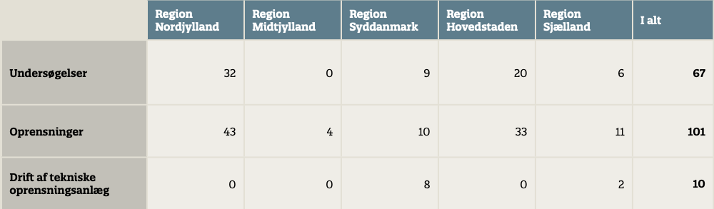 Tabel 7. Undersøgelser og oprensninger finansieret af Statens værditabsordning i 2016