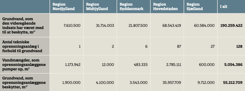 Tabel 9. Oversigt over de vandmængder, der beskyttes