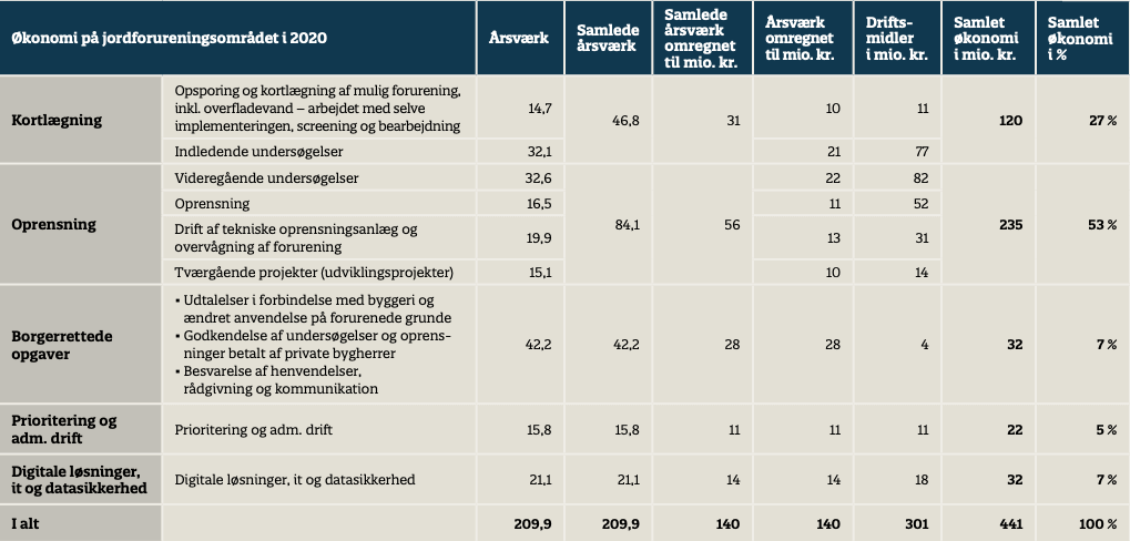 Tabel 17. Økonomien brugt på jordforureningsområdet i 2020